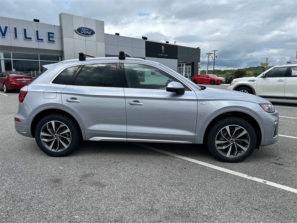 Clean CARFAX. CARFAX One-Owner. 2023 Audi Q5 45 S line Premium quattro 2.0L Turbocharged quattro 7-Speed Automatic S tronic Florett Silver Metallic