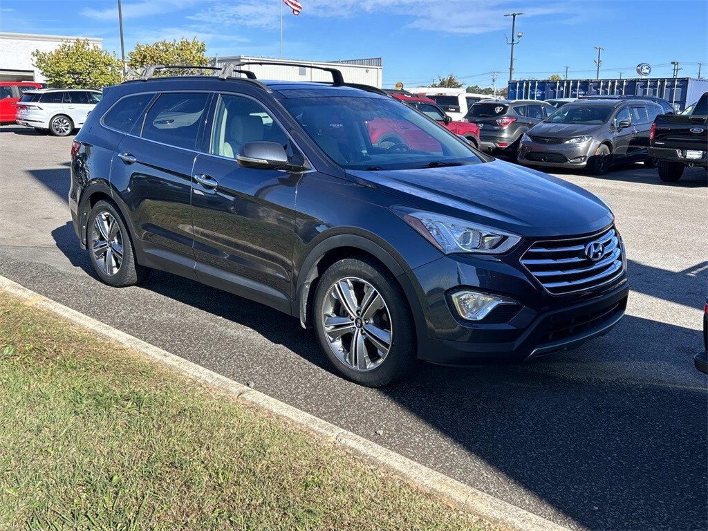 This Vehicle Includes the Following Features and Options: Ultimate Package 04 (115-Volt Power Outlet, Driver's Integrated Memory Seat, Heated Steering Wheel, High-Intensity Discharge Xenon Headlights, LED Taillights, Panoramic Sunroof, Premium Door Sill Plates, Radio: AM/FM/MP3/CD/HD Radio w/Navigation System, Rear Parking Assistance System, Ultimate Liftgate Badging, and Ventilated Front Seats), Beige Leather, Option Group 04, Wheels: 19" x 7.5" Aluminum Alloy, 3.041 Axle Ratio, 3rd row seats: split-bench, 4-Wheel Disc Brakes, 6 Speakers, ABS brakes, Air Conditioning, AM/FM radio: SiriusXM, Auto-dimming Rear-View mirror, Automatic temperature control, Brake assist, Bumpers: body-color, Cargo Tray, Carpeted Floor Mats, CD player, Compass, Delay-off headlights, Driver door bin, Driver vanity mirror, Dual front impact airbags, Dual front side impact airbags, Electronic Stability Control, Emergency communication system: Blue Link, Exterior Parking Camera Rear, First Aid Kit, Four wheel independent suspension, Front anti-roll bar, Front Bucket Seats, Front Center Armrest, Front dual zone A/C, Front fog lights, Front reading lights, Fully automatic headlights, Garage door transmitter: HomeLink, Heated door mirrors, Heated Front Bucket Seats, Heated front seats, Illuminated entry, Knee airbag, Leather Seating Surfaces, Low tire pressure warning, Mudguards, Occupant sensing airbag, Outside temperature display, Overhead airbag, Overhead console, Panic alarm, Passenger door bin, Passenger vanity mirror, Power door mirrors, Power driver seat, Power Liftgate, Power passenger seat, Power steering, Power windows, Radio: AM/FM/CD/HD Radio/MP3 Audio System, Rear air conditioning, Rear anti-roll bar, Rear window defroster, Rear window wiper, Remote keyless entry, Roof Rack Cross Bars, Roof rack: rails only, Security system, Speed control, Speed-sensing steering, Split folding rear seat, Spoiler, Steering wheel mounted audio controls, Tachometer, Telescoping steering wheel, Tilt steering wheel, Traction control, Trip computer, Turn signal indicator mirrors, and Variably intermittent wipers.