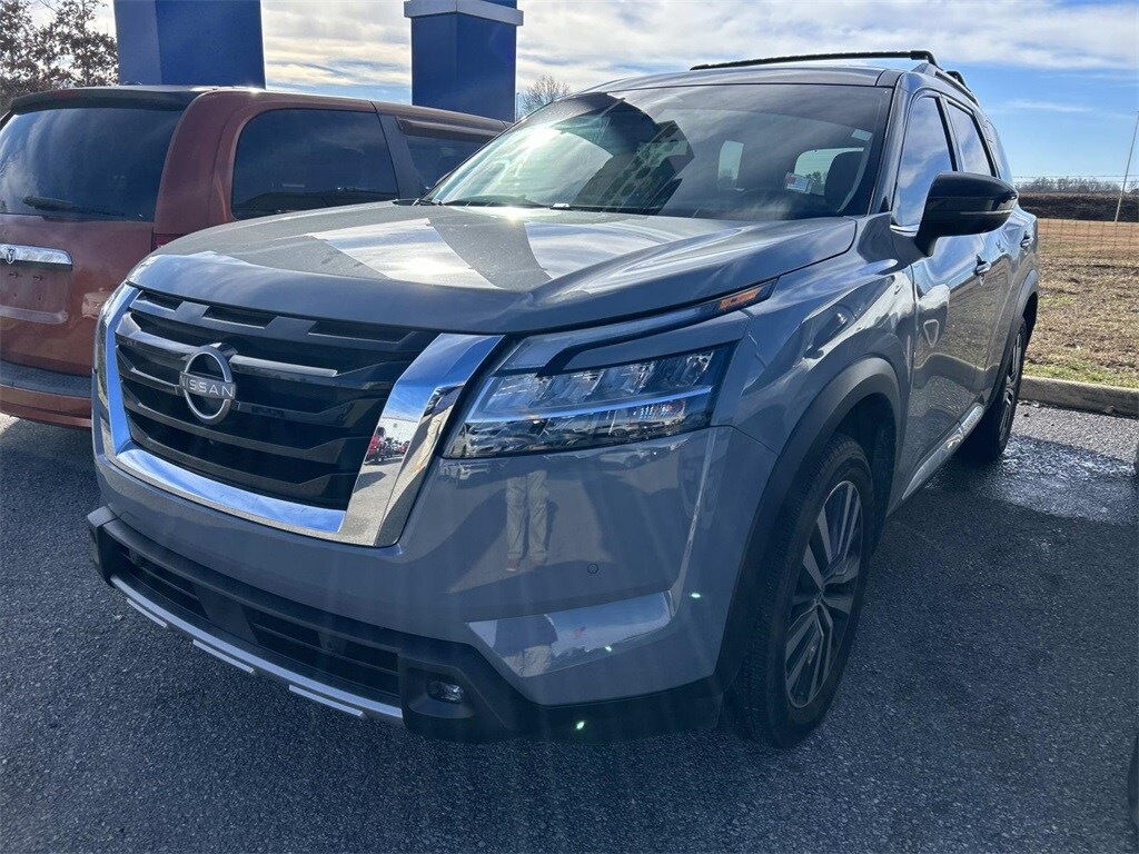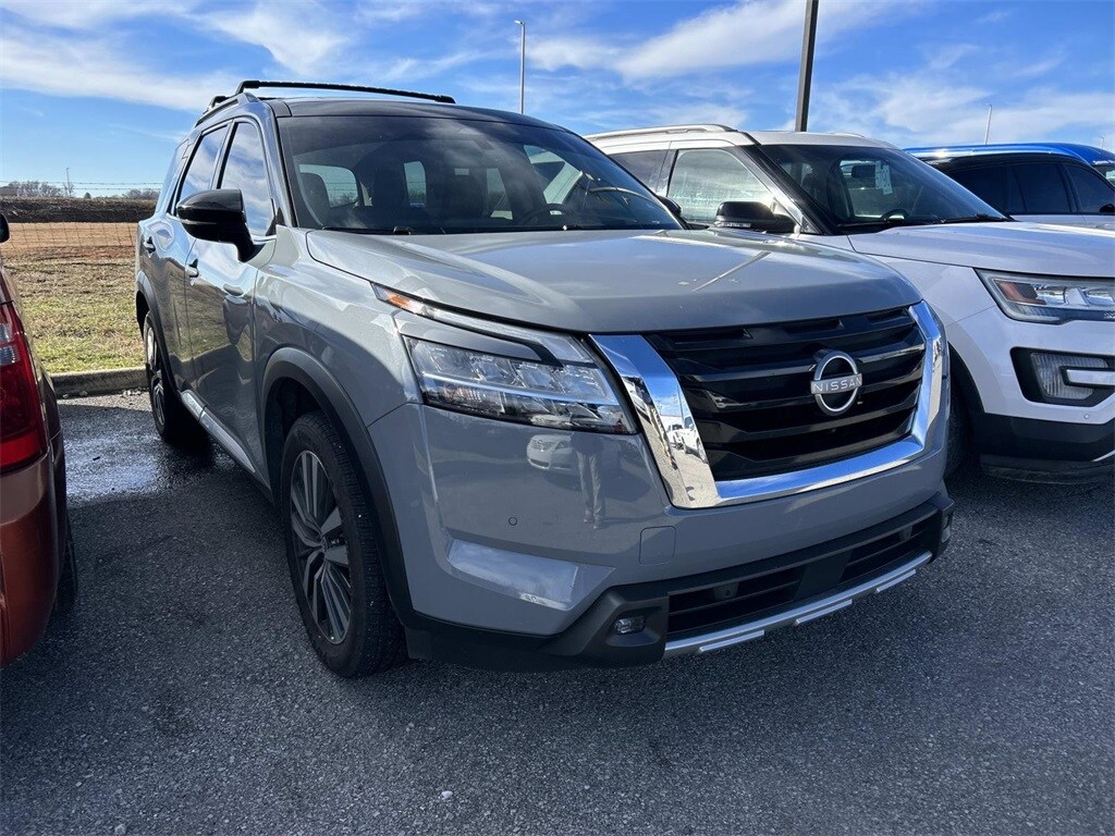 Clean CARFAX. CARFAX One-Owner. 2022 Nissan Pathfinder Platinum V6 FWD 9-Speed Automatic Solid Gray/Super Black